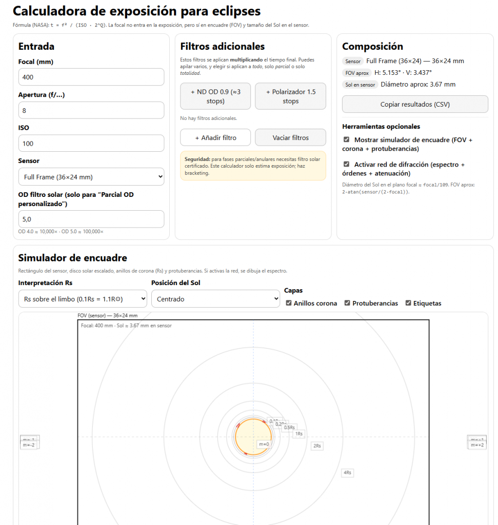 No pretende reemplazar tu experiencia ni tu cámara: pretende evitar el peor enemigo el día del eclipse… la improvisación. Aun así, hay que tener en cuenta que siempre hay cosas que no podremos controlar.
